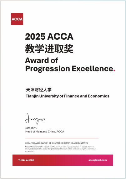 我校自1994年起开办ACCA教育,经过多年的砥砺奋斗,ACCA方向班从最初一个班的规模,发展到每年稳定三个班的规模。教学质量也获得了行业认可,先后十三年获得白金级教育机构资质认证,同时也是国内第一家ACCA师资培训基地。多次获得ACCA“优秀院校奖”。未来,学校将继续深耕国际化教育教学,贯彻落实第三次党代会精神,在更高水平全面推进“开放天财”建设,提升学校国际化办学水平和卓越的人才培养质量。