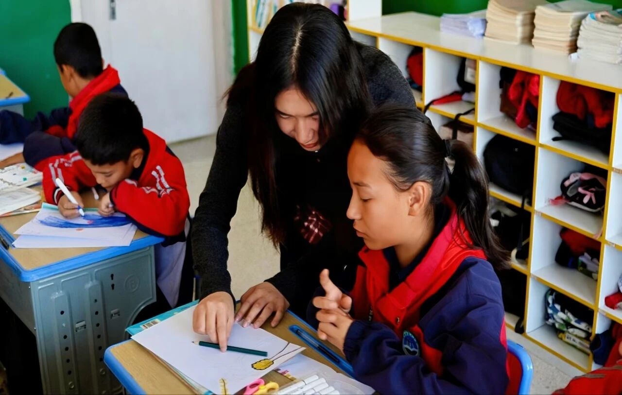 从初登讲台的忐忑到从容驾驭课堂,从理论到实践的跨越,三个月的支教让她对“教育”有了更深沉的认知。“最触动我的,是孩子们望向我的眼神——清澈、信任,又充满渴望。”一次美术课后,一名沉默许久的女孩悄悄塞给她一幅画:画中两个手拉手的人,背后是天津的摩天轮与和田的雪山。