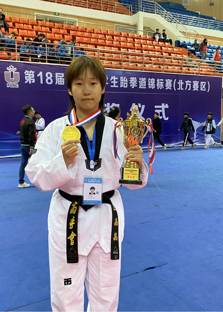谈及此次比赛,王晶晶谦逊而坚定地表示:“对成绩比较满意,也算为学校对我的信任交上了一份合格的答卷。”这份荣誉的背后,是她长期系统的刻苦训练与对竞技体育的深刻体悟,更生动诠释了“礼仪、廉耻、忍耐、克己、百折不屈”的跆拳道精神。