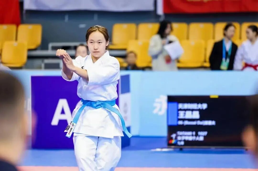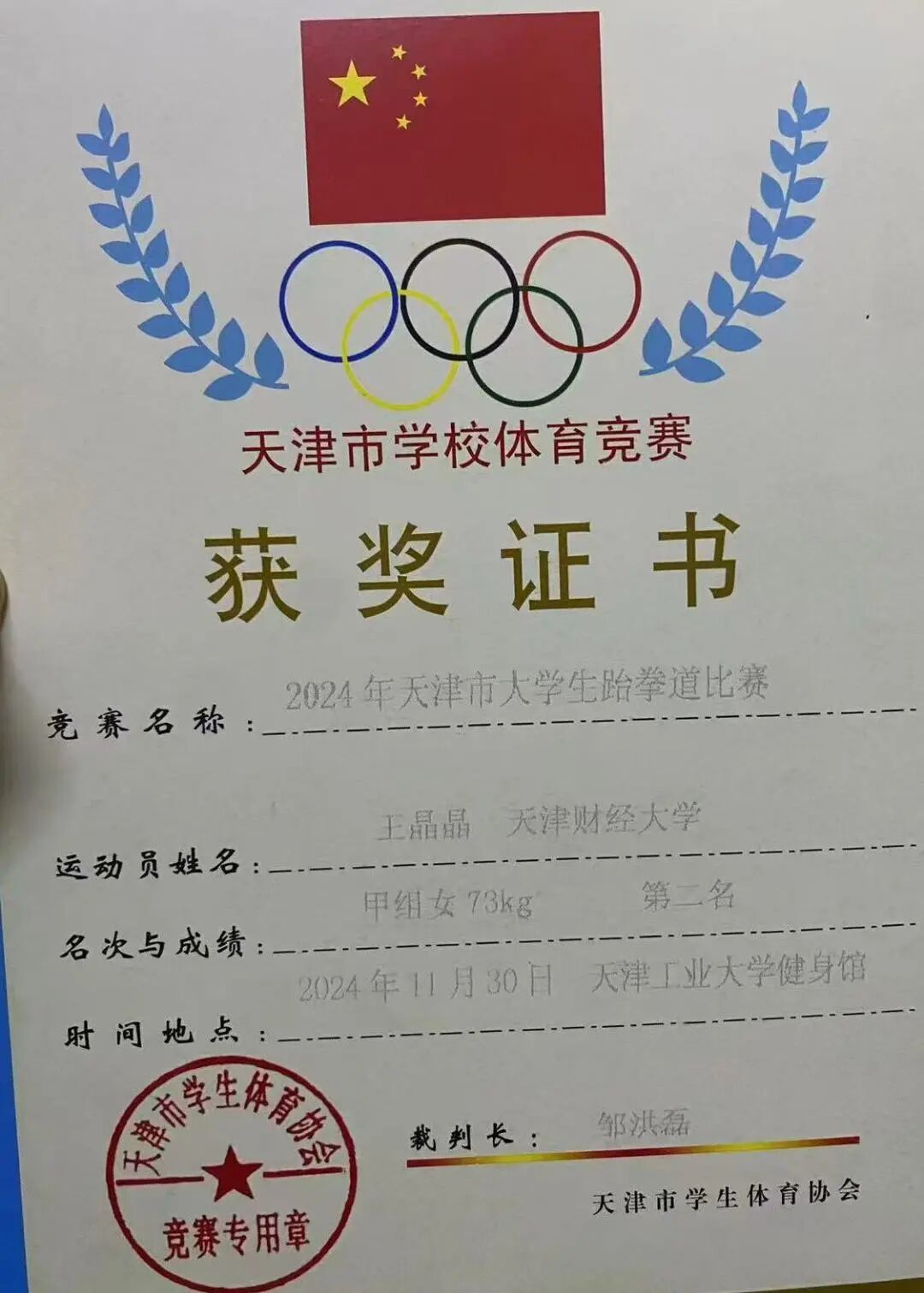 王晶晶的体育之路,由汗水和荣耀共同铸就。在转战空手道之前,她已在跆拳道赛场上崭露头角:先后斩获第18届中国大学生跆拳道锦标赛总决赛亚军、第19届(北方赛区)女子73KG冠军、全国锦标赛铜牌等多项国家级荣誉。每甸甸的奖牌,都印证着她全力以赴的奋斗历程。