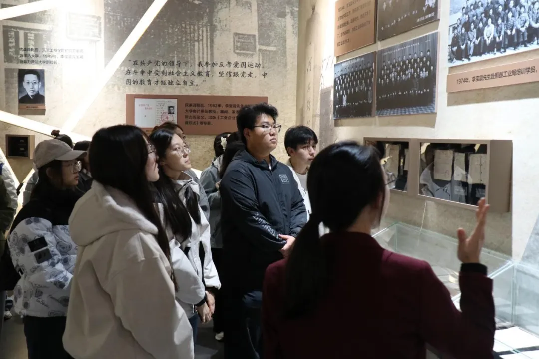 纪念馆内,大家沿着杨曾武先生、李宝震先生等老一辈天财人的奋斗足迹,在讲解员的细致讲解下,通过珍贵影像与实物资料,深入了解他们敢为人先的创新精神与勇担使命的高尚品格。一件件实物、一张张照片,生动再现了先辈们以振兴中华为己任的壮志豪情,让同学们深刻感受到学校深厚的历史底蕴与独特的人文魅力。参观过程中,大家认真聆听、驻足沉思,纷纷表示这是一次精神的洗礼与思想的升华。