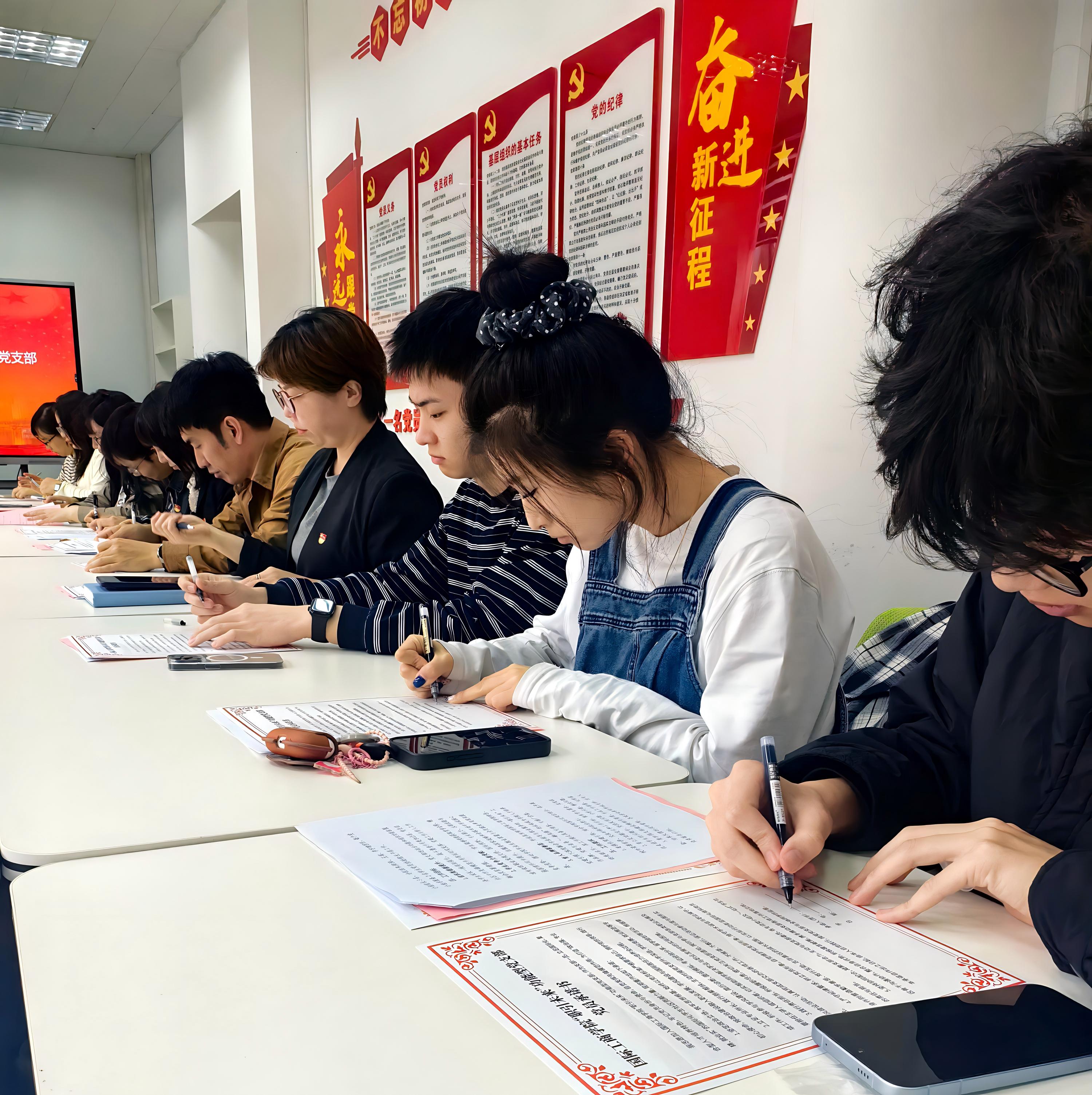 大会特别设置了党员承诺书签署仪式。“职引未来”功能型党支部全体党员在现场郑重签署承诺书,承诺坚定政治立场、践行朋辈帮扶、严守纪律要求,以务实行动服务同学成长,助力学院发展。